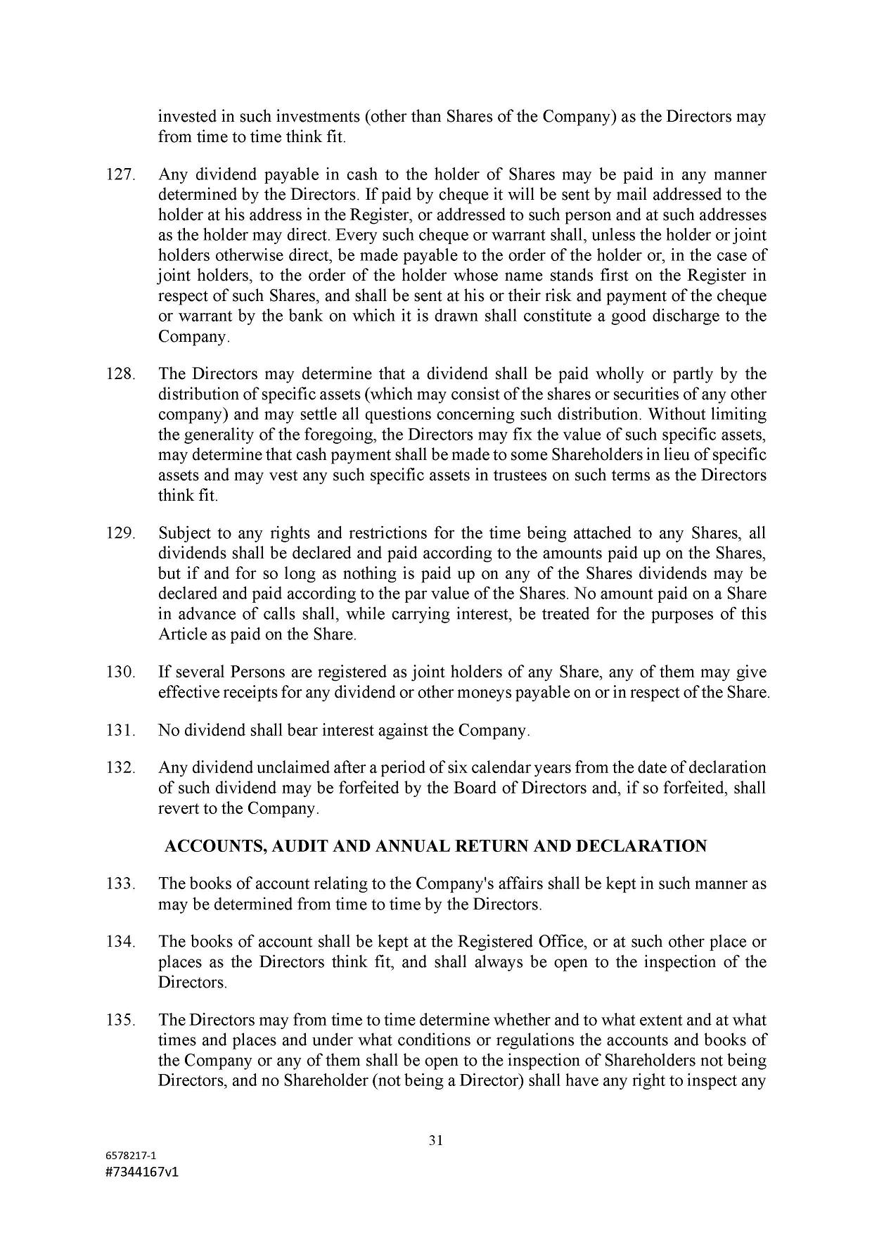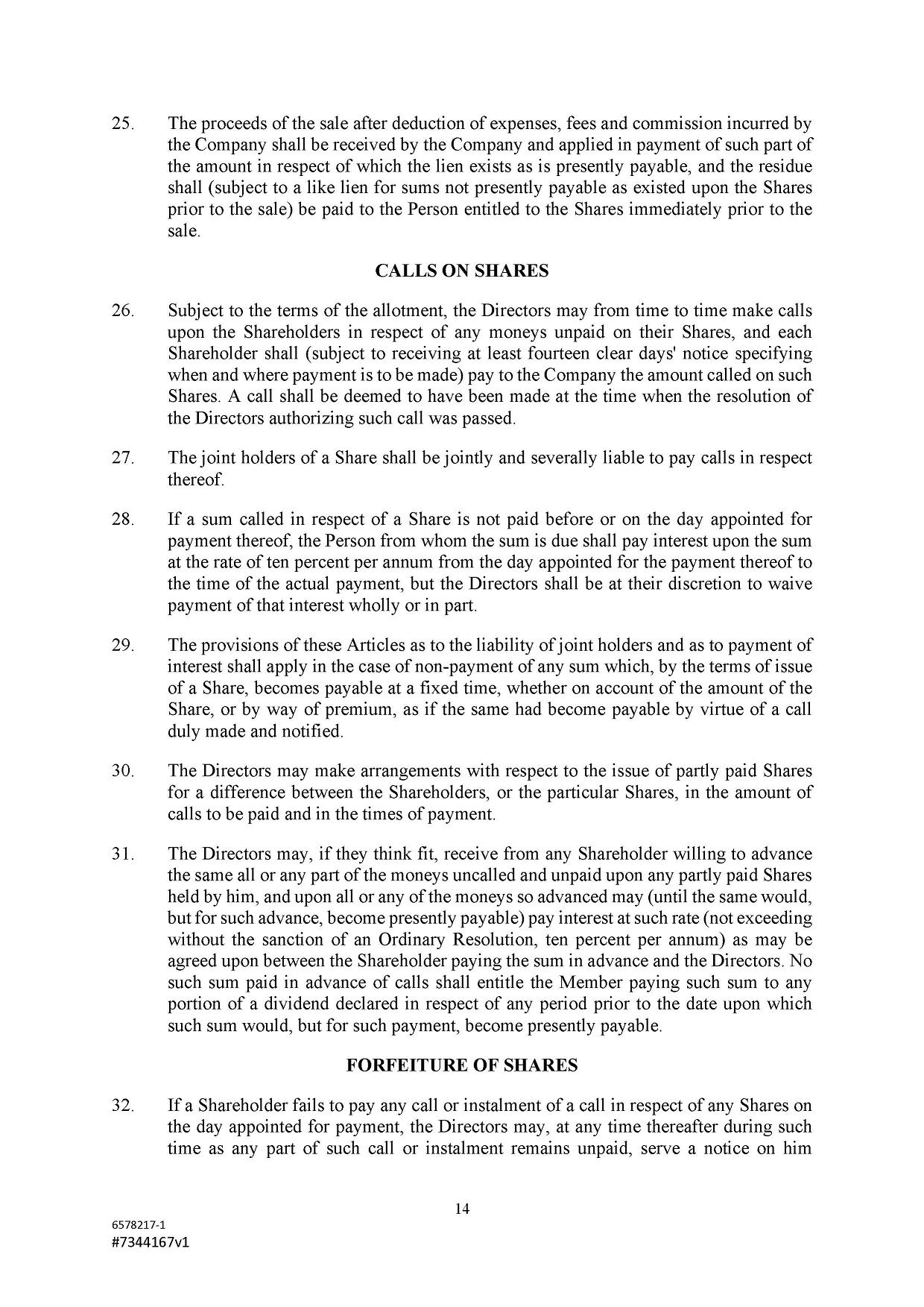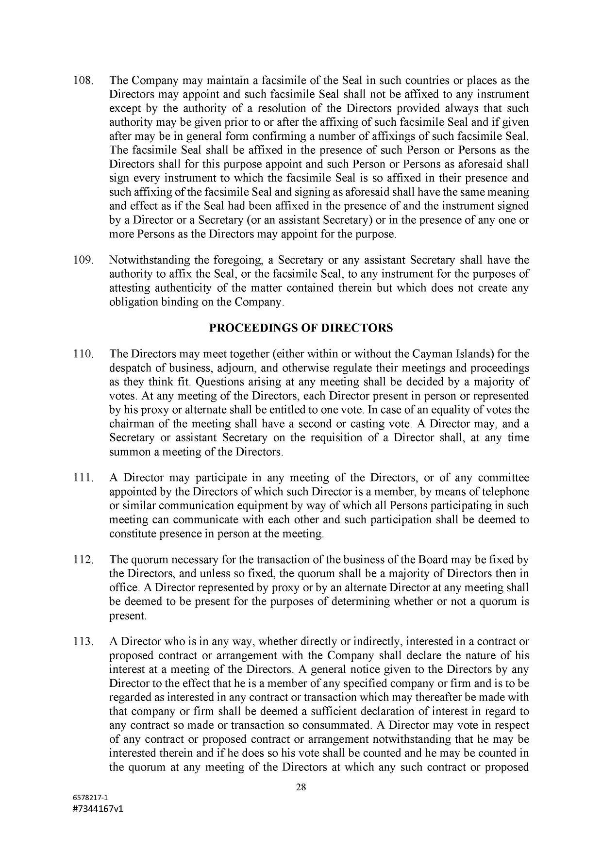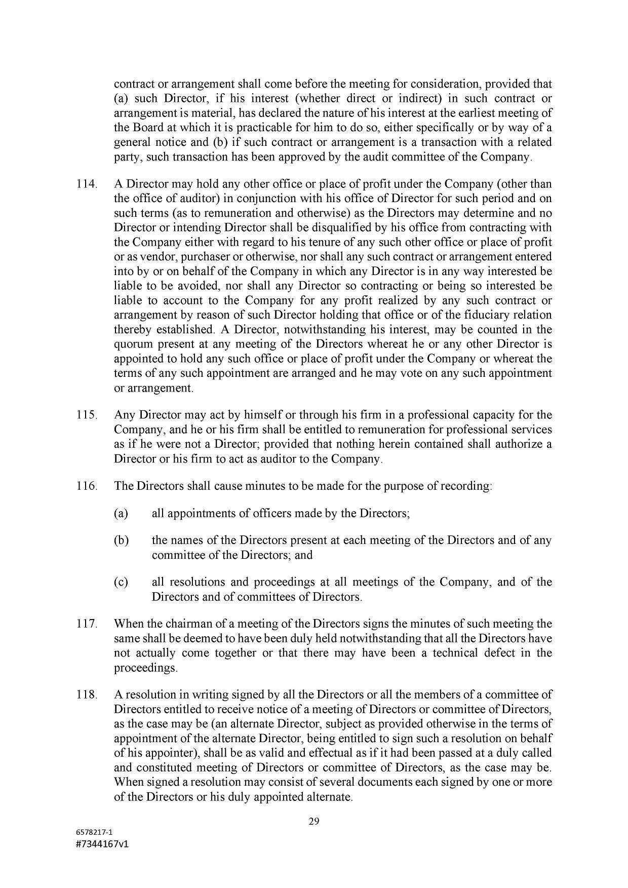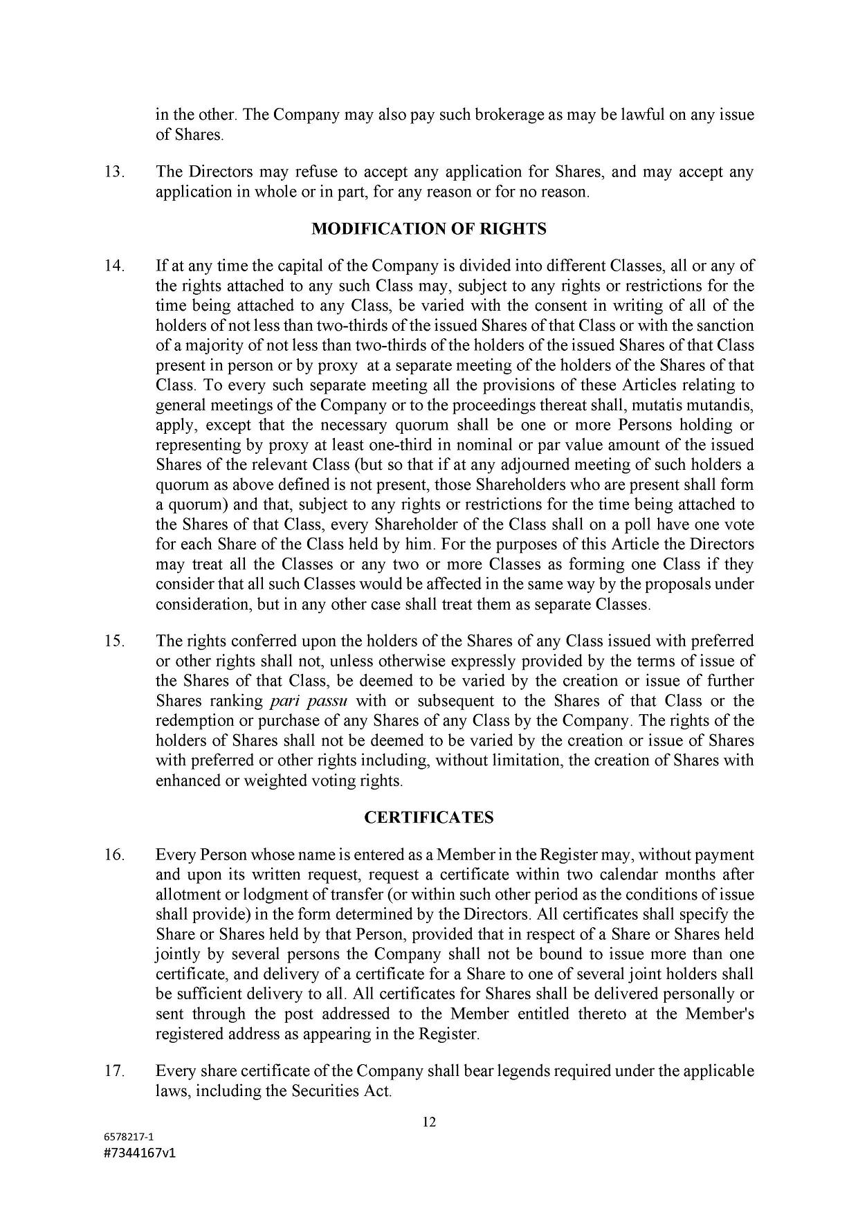 Subject to the Second Amended and Restated Memorandum and Articles of Association and any other transfer or conversion restrictions pursuant to arrangements entered into by the Company with any depositary bank or other parties, any Shareholder may transfer all or any of his Shares (including securities representing his Shares) by an instrument of transfer in the usual or common form or in a form prescribed by the Designated Stock Exchange or in any other form approved by the Board or, if the transferor or transferee is a clearing house or a central depository house or its nominee(s), by hand or by machine imprinted signature or by such other manner of execution as the Board may approve from time to time.