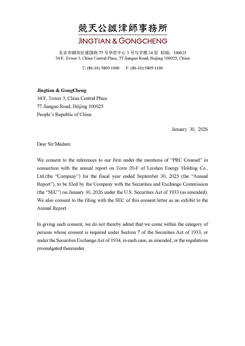 | ● | “Leishen Nanjing” refers to Leishen Energy Technology (Nanjing) Co., Ltd., a Chinese company and a wholly-owned subsidiary of Leishen (Holding) Hong Kong; | |